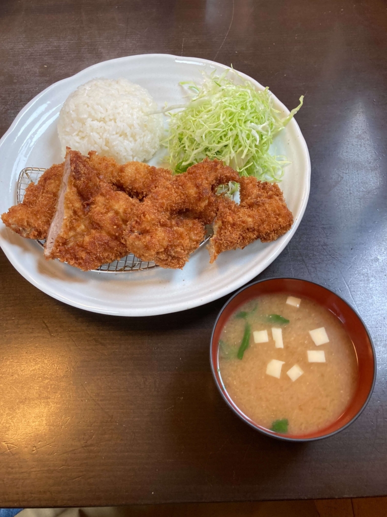 注文はスマホでQRコードを読み取るスタイル。古風な雰囲気だったのでちょっと意外でした。日替りはカツの間にスライスにんにくを入れたもの。にんにくの風味がきいてて、美味しかったです。ボリューム満点だったので行列なのは納得です。コーヒーと紅茶は無料でした。