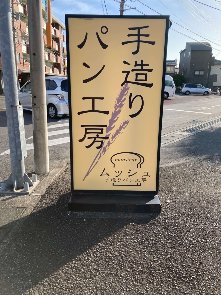 外観は・・・パン好きなんだなぁと思わせる素敵な看板です。広いテラス席もあったので焼きたてパンをその場で頂けそうです。