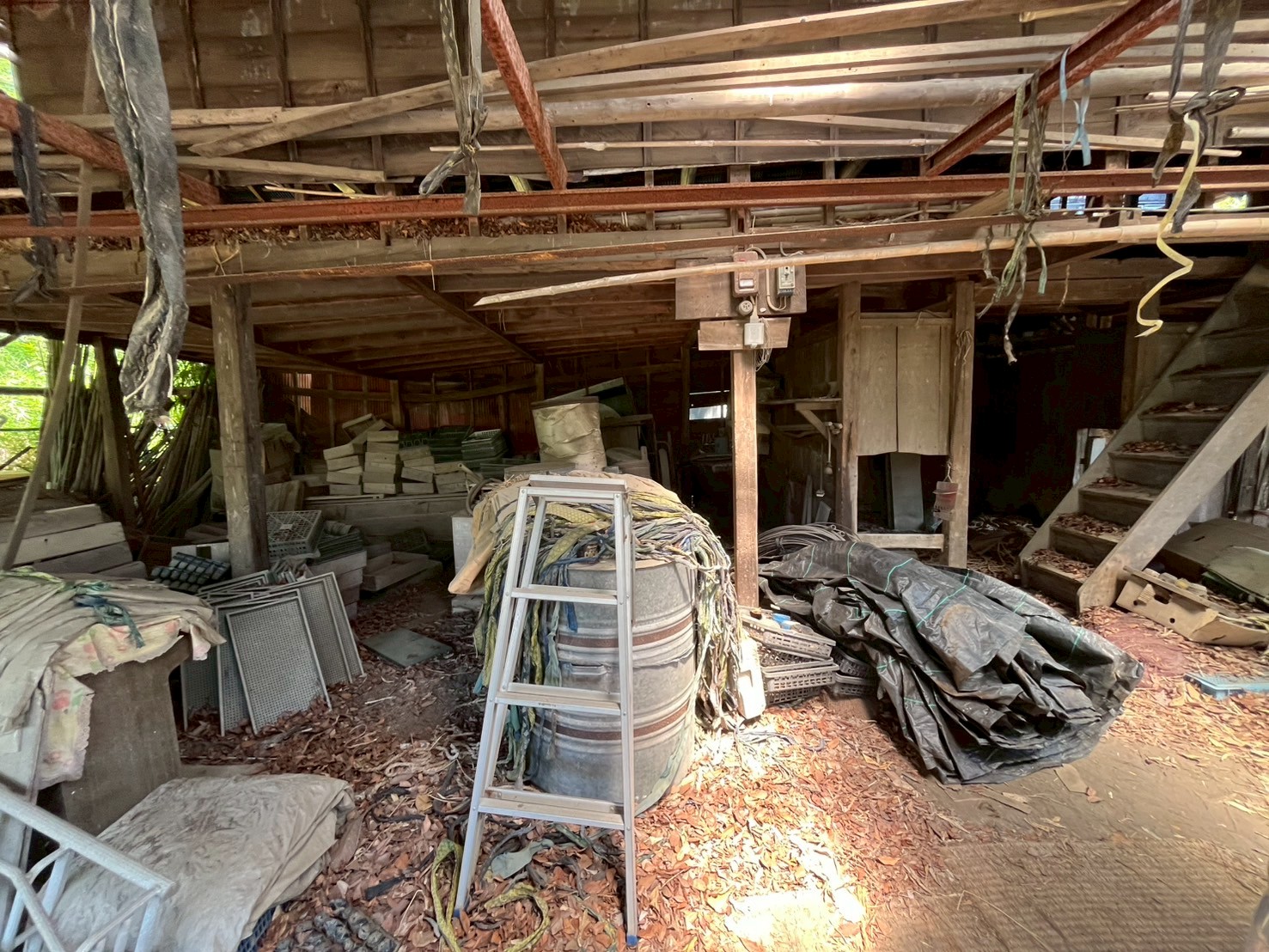 • 解体前の物置。2階にも藁が残っている状態。
